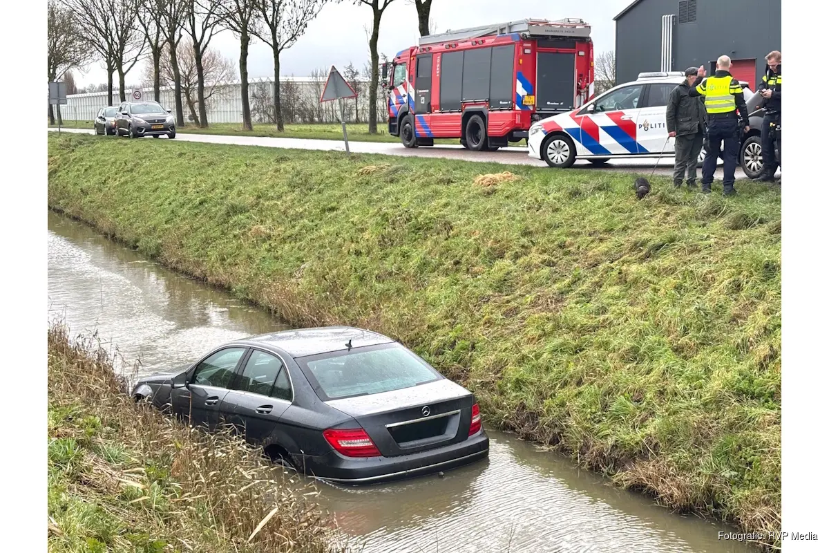 Een automobilist reed vanaf de Gedeputeerde Laanweg over de Kadijkweg in de richting van de Nieuwe Dijk, maar verloor door nog onbekende oorzaak de controle over het voertuig. De auto raakte van de weg en kwam in het water terecht.