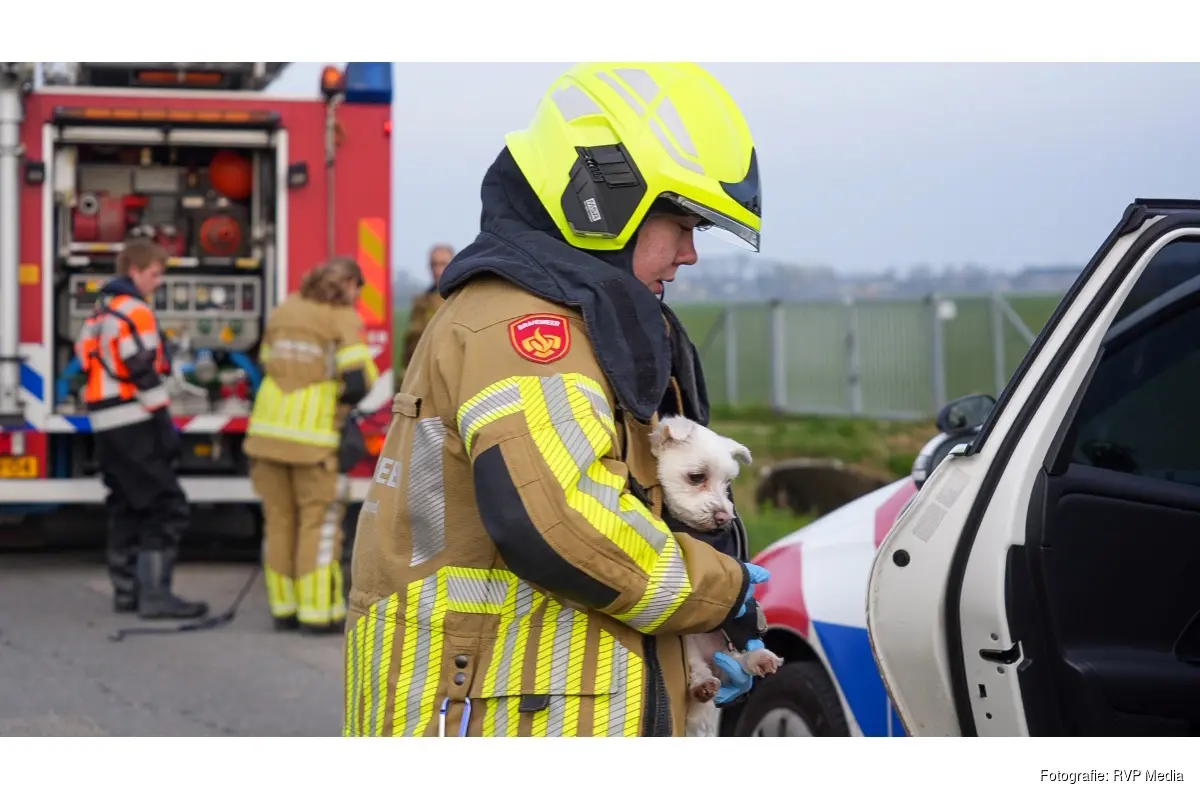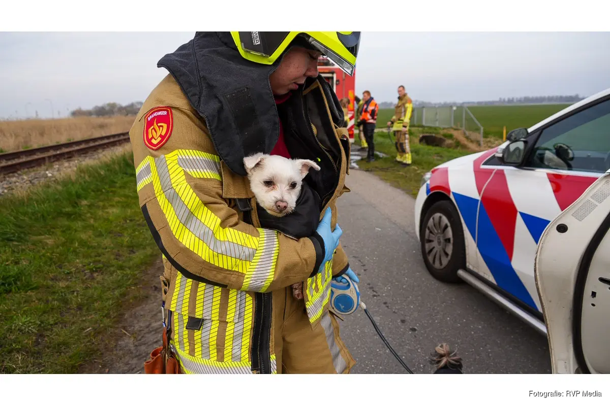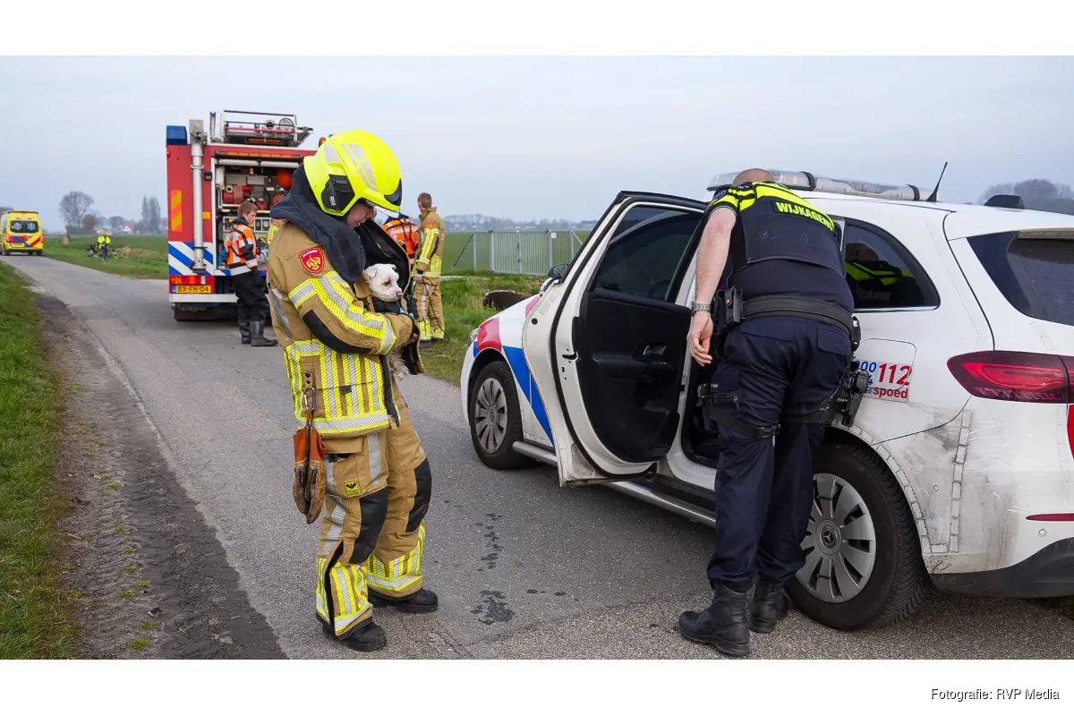MIDWOUD - De hulpdiensten zijn maandagmiddag uitgerukt naar de Broerdijk in Midwoud. Langs het spoor was een scootmobiel in het water terecht gekomen. Op de scootmobiel zaten de bestuurder en twee hondjes.