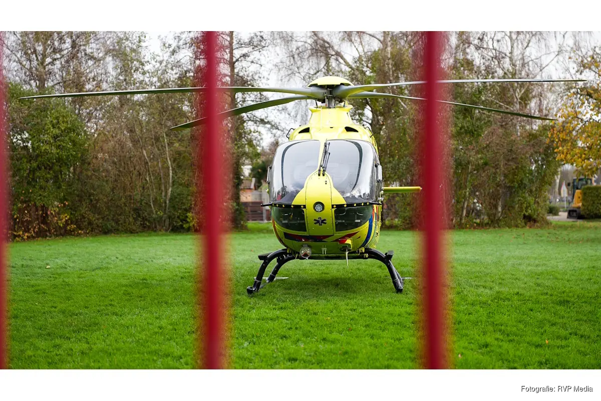 De traumahelikopter uit Amsterdam lande op een voetbalveld op het Schouw.