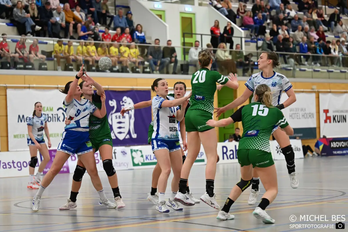 Toch kwam SEW nog even terug van 24-30 naar 27-30 en leek er met nog vijf minuten op de klok hoop op een stunt. Quintus raakte echter niet in paniek, scoorde onder meer drie keer via oud-SEW-speelster Lysanne Huele, en trok de overwinning voor de tweede keer dit seizoen over de streep.